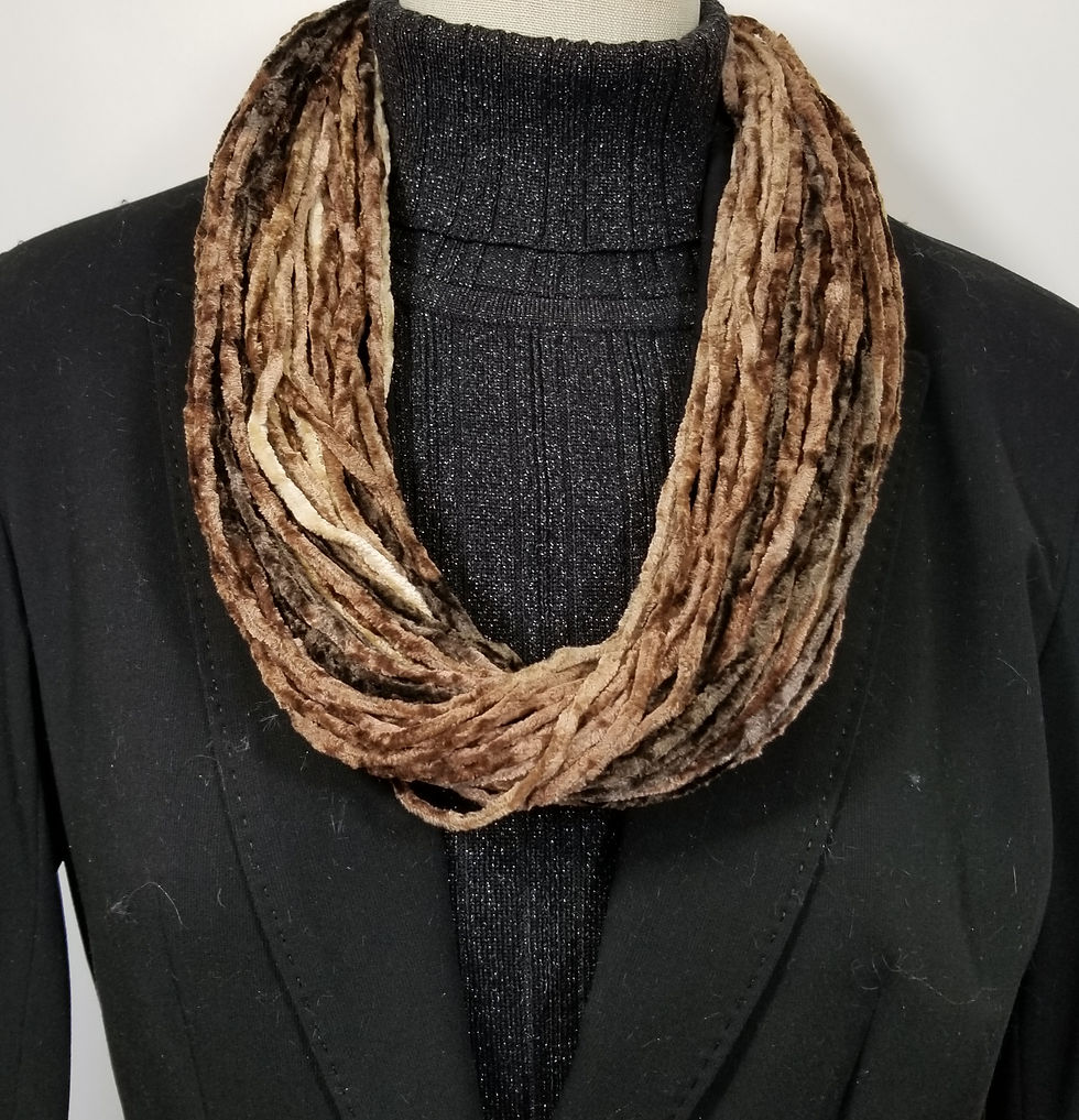 Brown Mix Crushed Velvet Necklace Infinity Scarf Magnetic Clasp